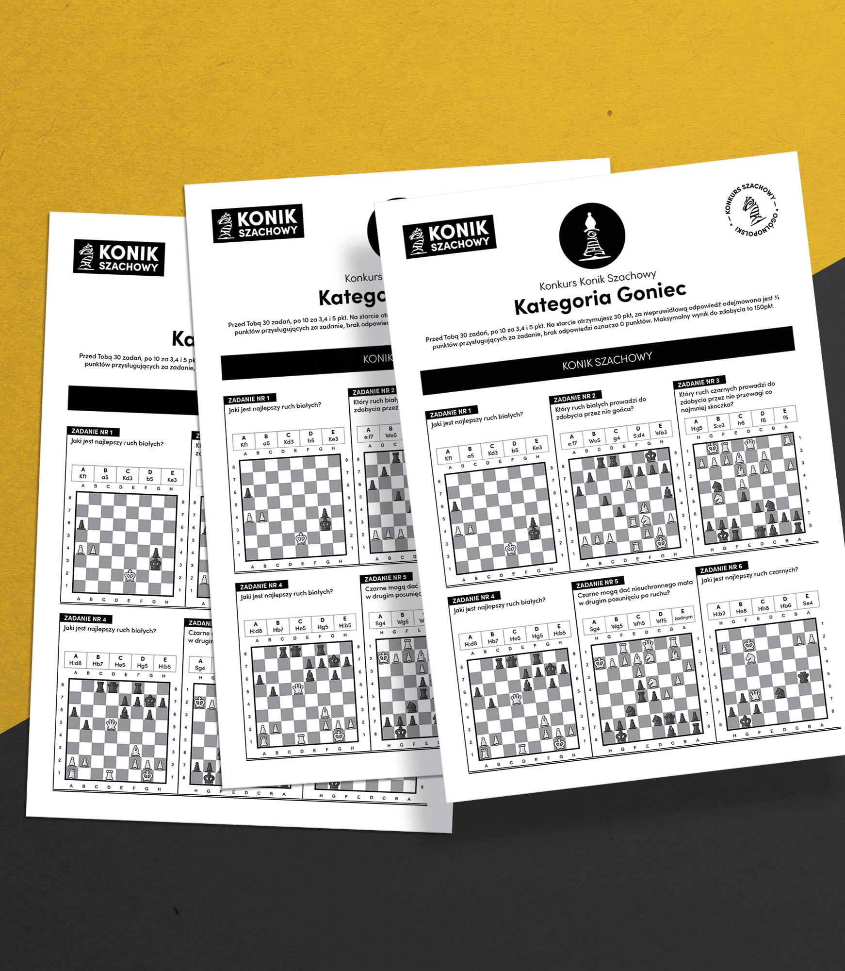 Na kartach zadań znajduje się 30 zadań szachowych o różnym stopniu trudności dopasowanym do wieku i poziomu uczestnika. Te karty KURIER dostarczy do szkoły na kilka dni przed terminem.