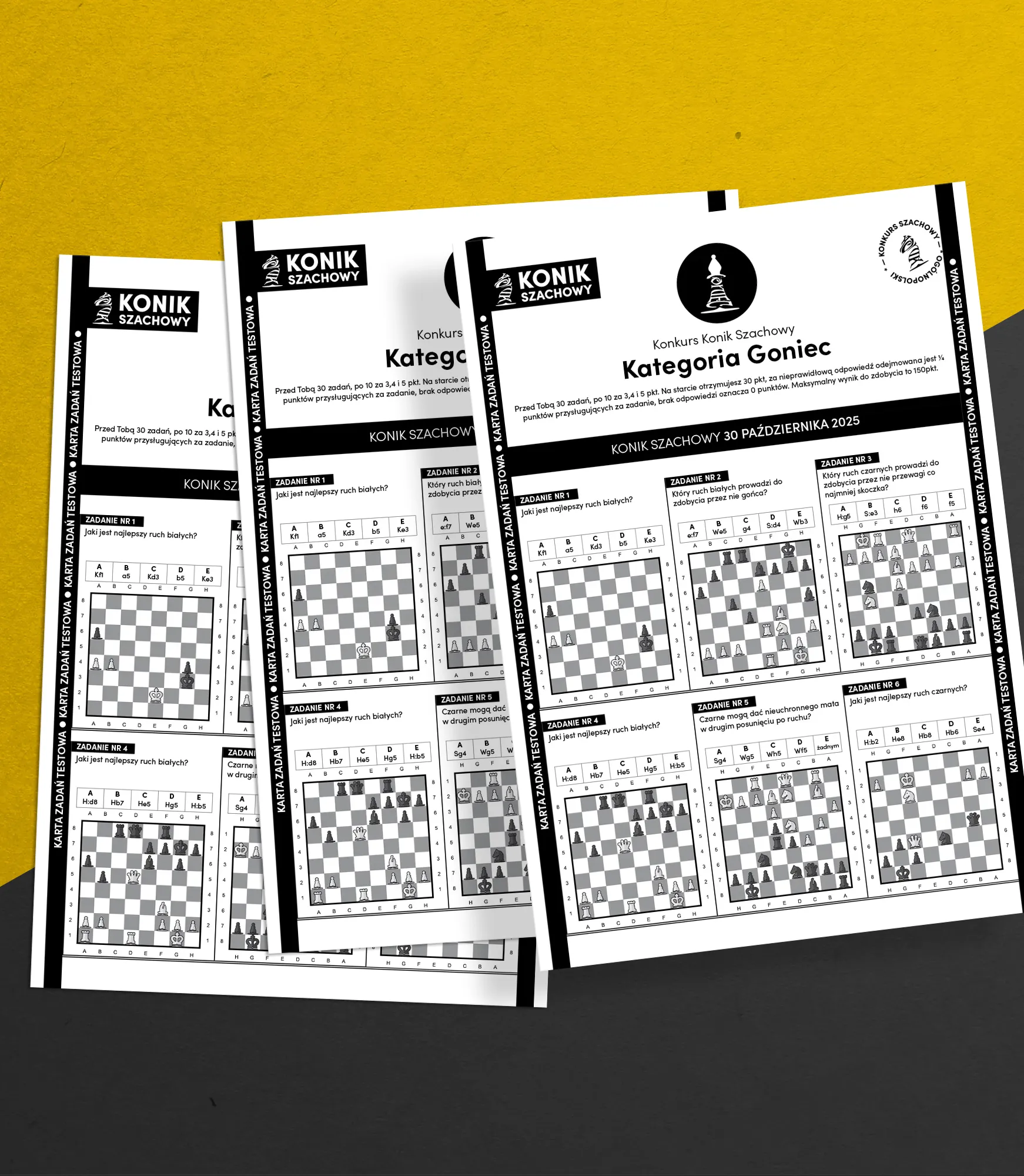 Na kartach zadań znajduje się 30 zadań szachowych o różnym stopniu trudności dopasowanym do wieku i poziomu uczestnika. Te karty KURIER dostarczy do szkoły na kilka dni przed terminem.